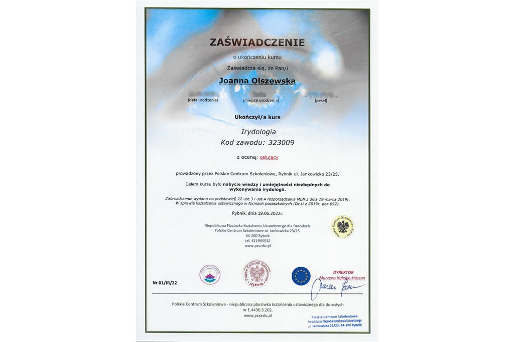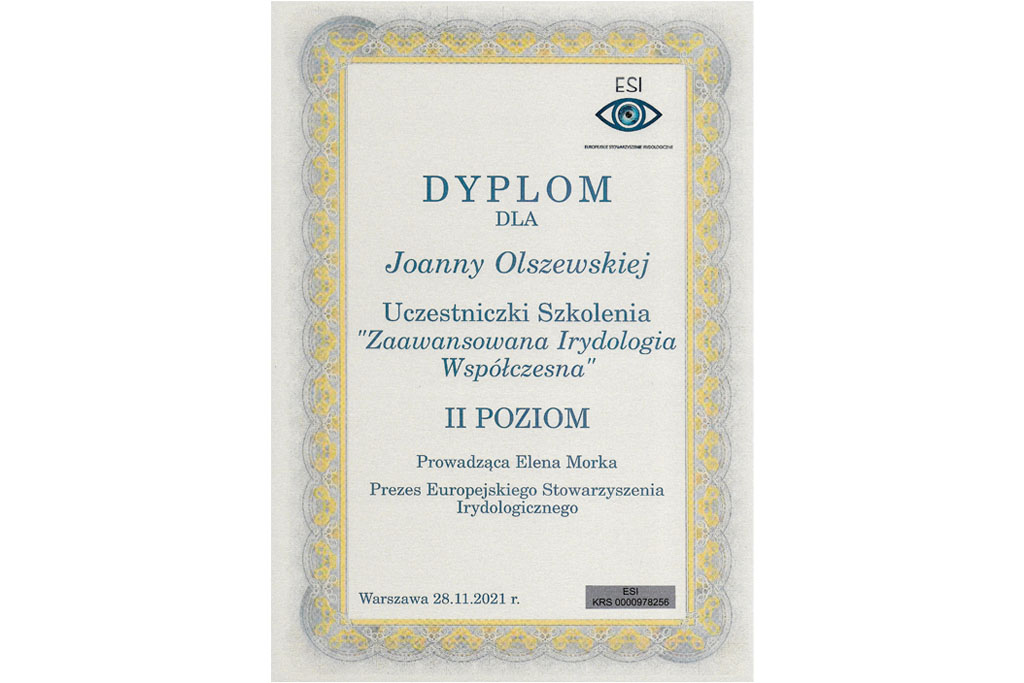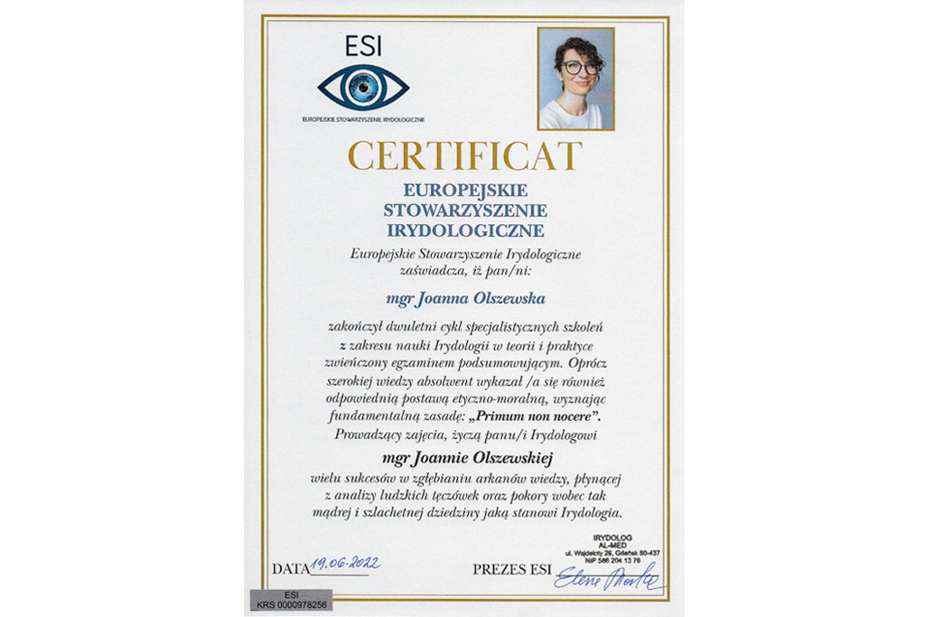 Dyplom - ESI - Zaawansowana Irydologia Współczesna - poziom II