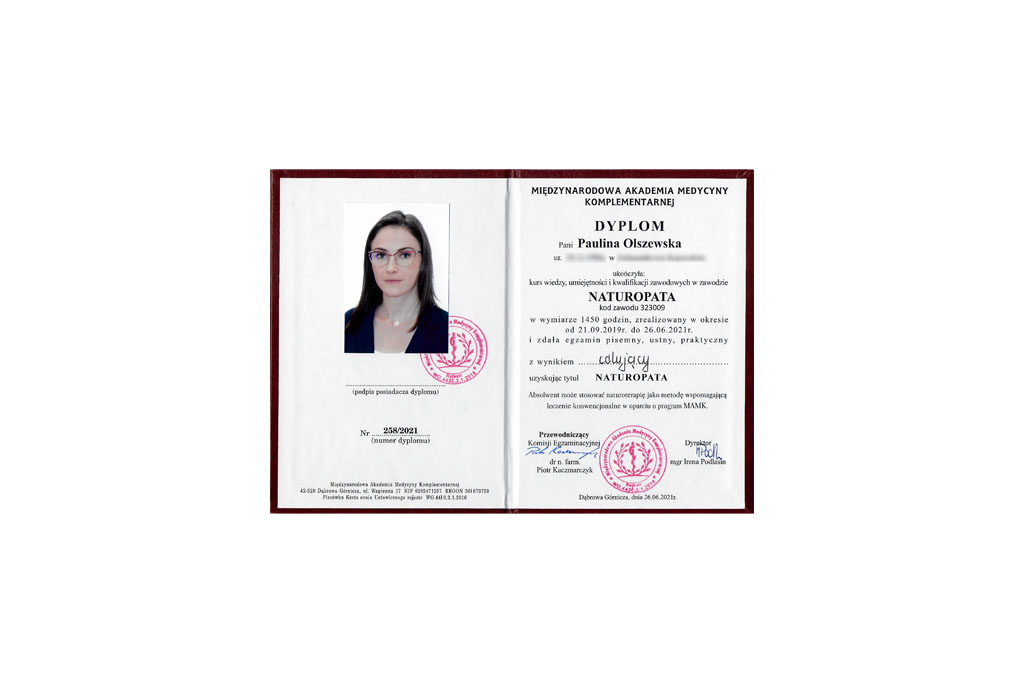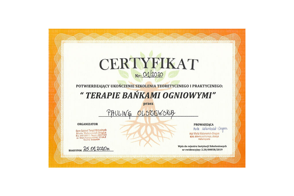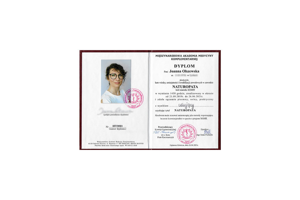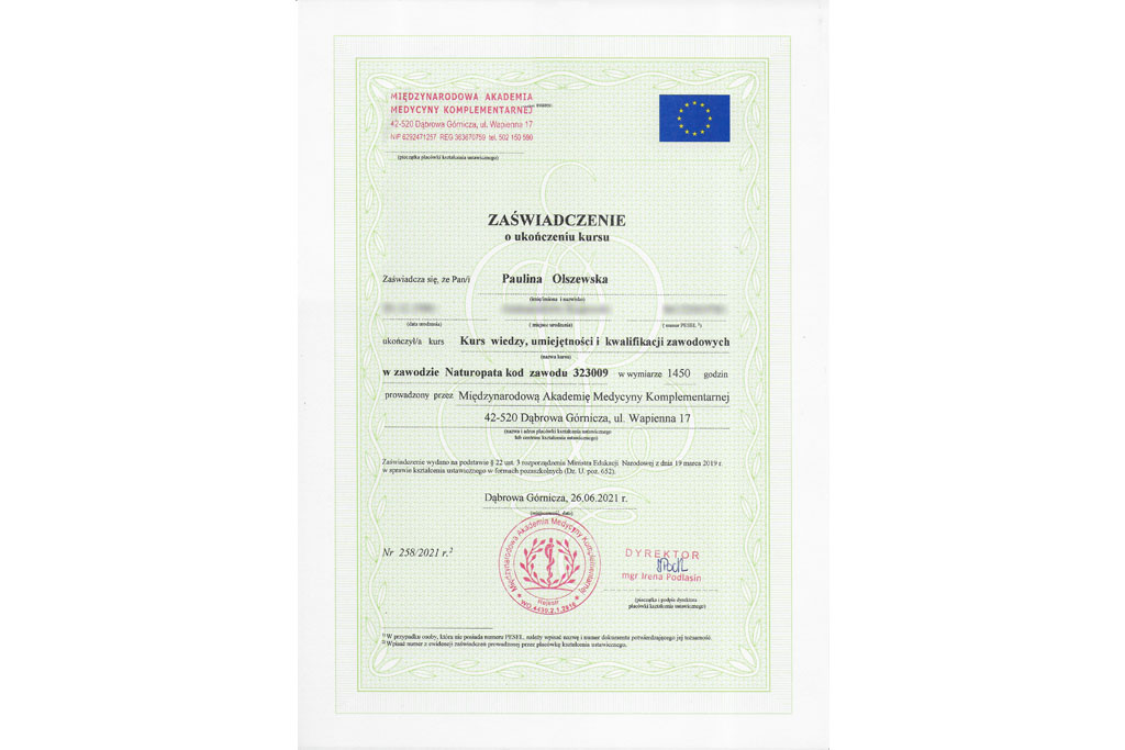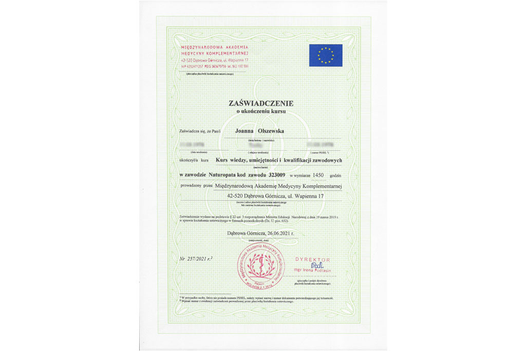 Zaświadczenie - Akupunkturzysta metodą Voll'a