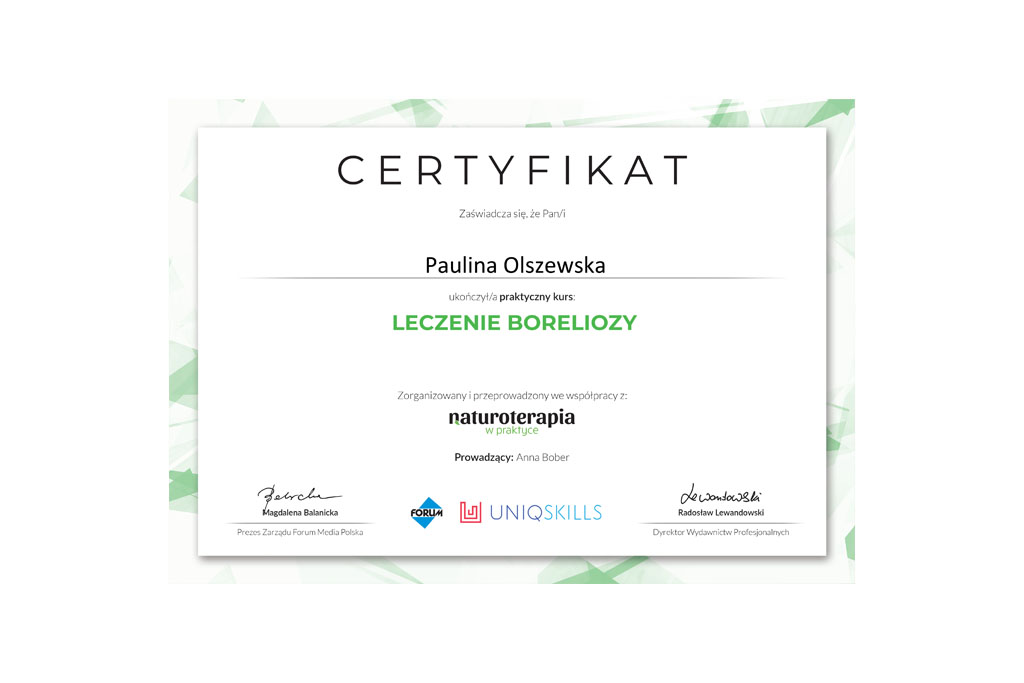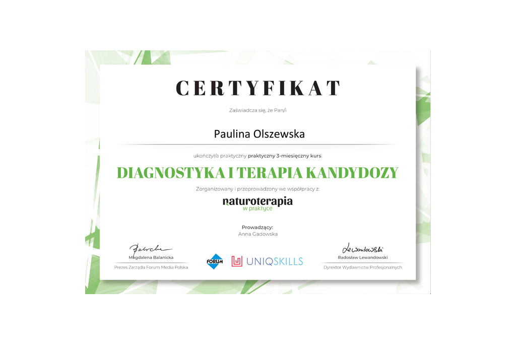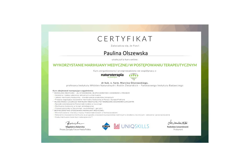 Certyfikat - wykorzystanie marihuany medycznej w terapii